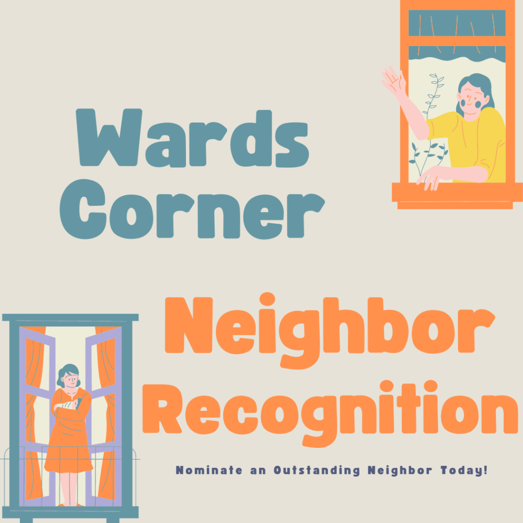 Our civic league wants you to acknowledge your outstanding neighbors for doing special things that make Wards Corner a better place. Your outstanding neighbor may be a youth, a teenager, a senior, a longtime resident, or brand new to Wards Corner. The important criteria is that they make a positive difference in Wards Corner.